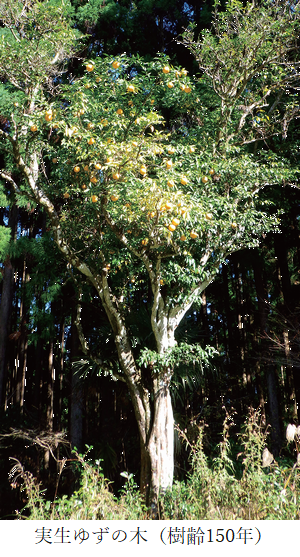 現在、ゆずのほとんどは接ぎ木で栽培されています。北川村には、種から育った「実生のゆず」が現在も多く残されており、古い木は慎太郎時代のものといわれています。