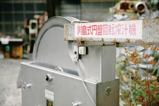 当時、地元の農事組合は20名ほど。いちばんの若手だった川島さんは、26歳のときにゆず栽培をはじめたそうです。「それまで農作物に使っていた田畑はほとんどゆずに植替えました。収穫が軌道に乗りだすと昼間は収穫、夜は日付が変わるまで手絞りの簡易な道具で搾汁をしていた。それがとても大変で、何とか効率良くしたいと試行錯誤結果がこれですよ」と見せてくれたのは"川島式円盤回転搾汁機"とラベルのついた搾汁機。川島さんの名前が付いており、じつは機械の特許を4つもお持ちなのです。でもまだ川島さんの凄さはそれだけではないのです。「ゆずを始めて8年後、当時誰もやったことのなかったハウス(施設園芸)での栽培をスタートさせました。同時に今でいう"カラーリング"の研究にもいち早く着手した。最初の頃はきっと周りの人たちからは、また変なことをやりはじめたぞ、というくらいにしか見られていなかったと思いますよ。でも私にとってみれば上手くいくかいかないか、金になるかならないかは重要ではなかったんです。とにかく誰もやったことのないことをやってみたかった。ハウスを組み立てるのも、カラーリングも、接木も、機械の開発も」